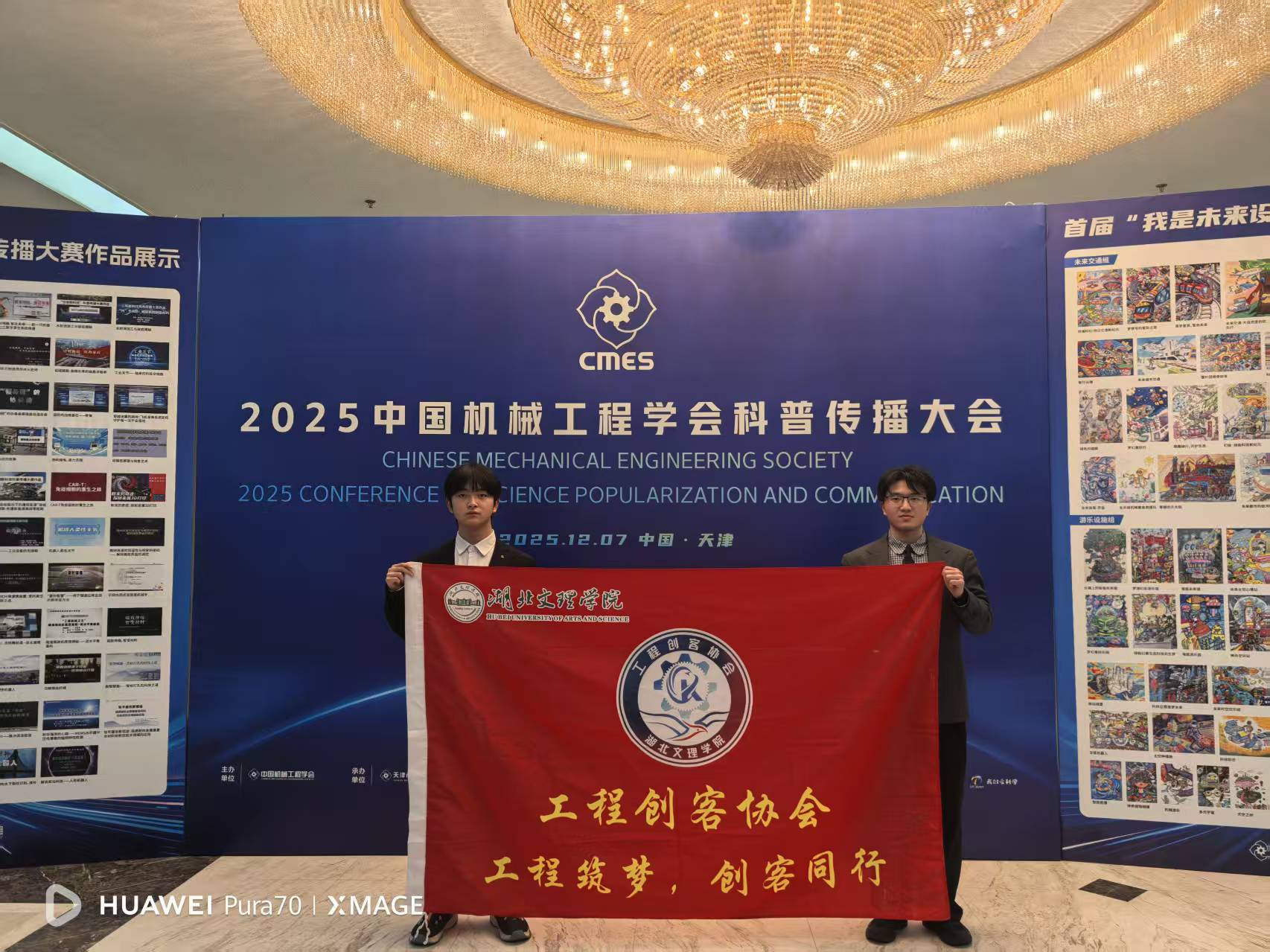 (通訊員:耿茂東 宋孟陽 袁偉巖)近日,由中國機械工程學會主辦、天津市機械工程學會等單位聯合承辦的第六屆“云說新科技”科普傳播大賽全國總決賽終評會在天津圓滿落幕。本屆賽事自2025年5月啟動,歷經區域選拔賽、全國賽初評至全國總決賽,吸引全國12個賽區423部作品參與角逐,最終50部作品入圍總決賽終評環節,累計收獲590萬網絡投票,賽事規模與影響力再創新高。作為湖北文理學院機械工程學院工程創客協會的核心骨干成員,耿茂東、代嚴松兩位同學憑借扎實的創作功底與沉穩的現場表現,在激烈比拼中脫穎而出,一舉斬獲國家級榮譽,為協會、為學校贏得了榮光!