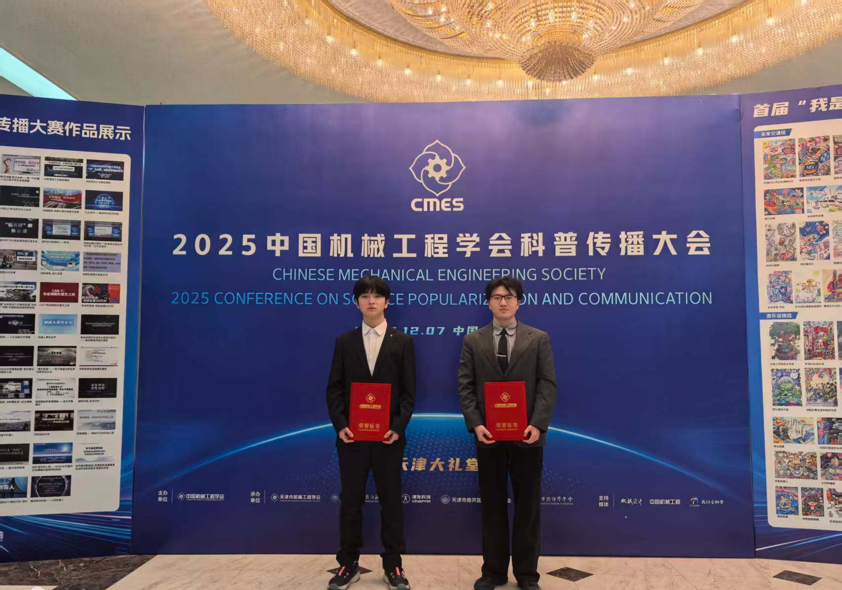本次大賽參賽作品聚焦機械工程學科前沿,緊扣智能化、綠色化、輕量化發展趨勢,涵蓋人工智能、增材制造、新能源與新材料等核心方向。12月6日的總決賽現場,兩位同學沉著應戰,協會研究生成員代嚴松以專業嚴謹的科普內容、邏輯清晰的思路闡述和流暢自信的現場答辯,贏得評審專家一致認可,成功摘得國家一等獎;本科生成員耿茂東的作品則以新穎獨特的創意視角和極強的傳播感染力脫穎而出,斬獲國家三等獎。值得一提的是,在大賽網絡投票環節,兩位同學的作品憑借過硬質量收獲超高人氣,雙雙獲評“最具人氣獎”,充分展現了我協會學子在機械工程科普傳播領域的創新活力與綜合素養。