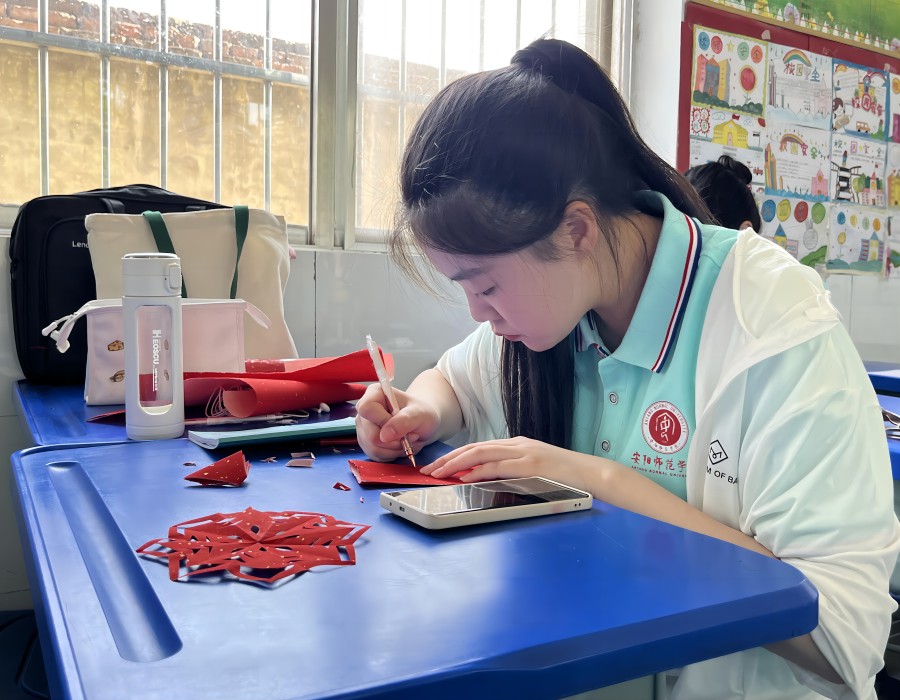 (圖為豫才支教隊成員制作剪紙)