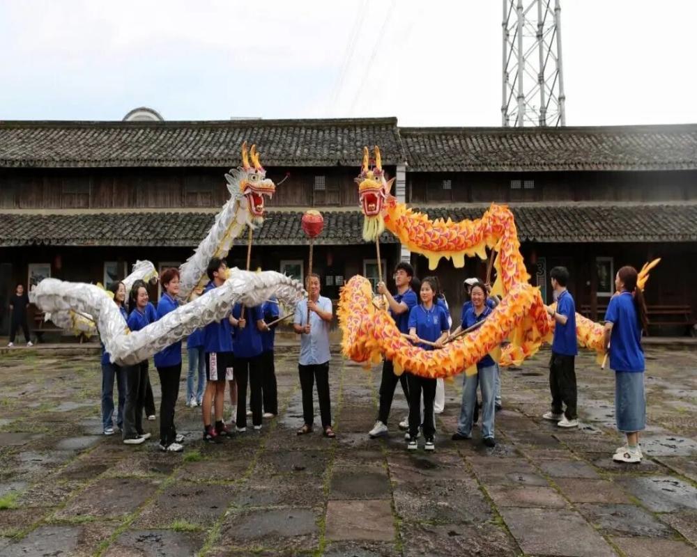 (圖為實踐團隊在舞龍,中國青年網通訊員 蔣雨軒供圖)