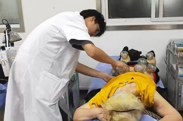 圖為隊員為患者拔火罐。