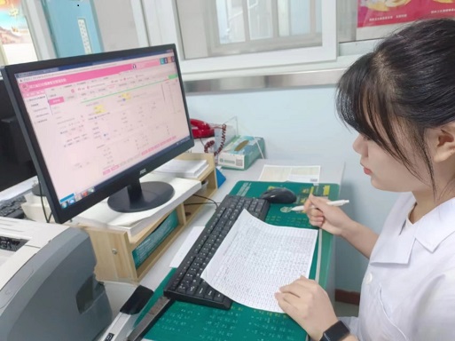 圖為隊員進行幼兒體檢的信息錄入。