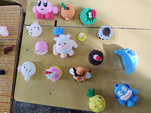 黃昏將至,活動也即將宣告結束。每位同學手里都帶著自己制作了一個半小時的作品,或一個,或兩個,也有三個。當大家把作品置于桌上,各有特色的作品讓人眼前一亮。有些同學還熱情地把自己的作品送給了班助。在一定程度上,超輕粘土的最終結果取決于制作人的想法,因此每位同學做出的成品可能不盡相同。