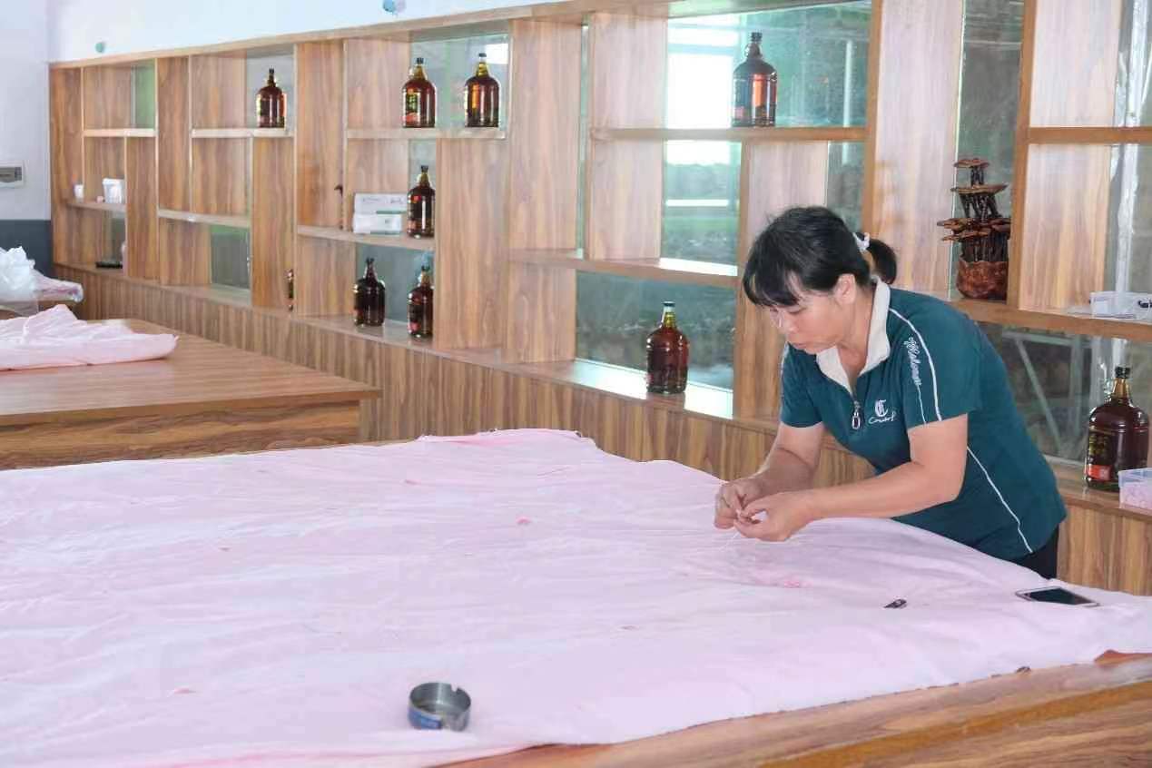 圖為合作社工作人員制作蠶絲被的過(guò)程。林琳 供圖