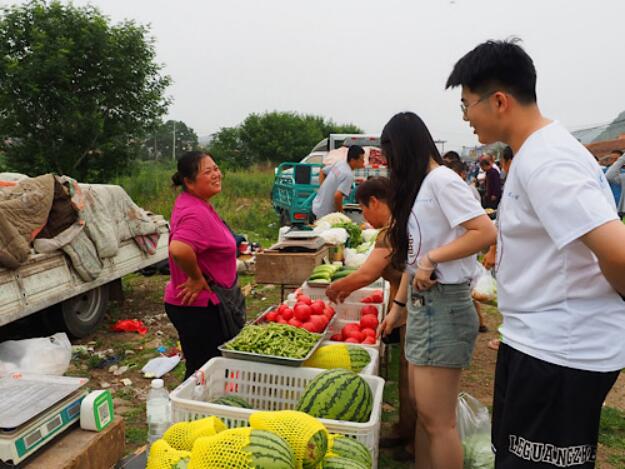 為獲取蛇窩泊鎮(zhèn)當(dāng)?shù)氐乃麅r格和銷售途徑以及宣傳實踐團隊產(chǎn)品,7月15日,袋小果助農(nóng)實踐團參加了每5日舉辦一次的蛇窩泊鎮(zhèn)市集。