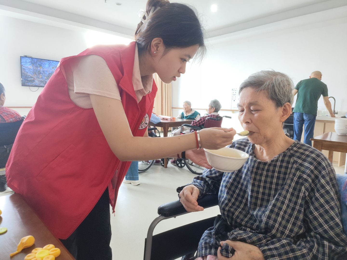 圖為志愿者為部分用餐困難的老人提供喂飯協助。供圖:方曉鳳