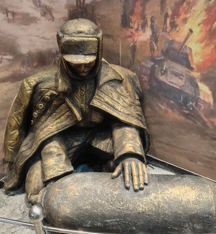 (圖為李云龍拆定時炸彈的雕塑 來源:鐵脈薪傳宣傳部 )
