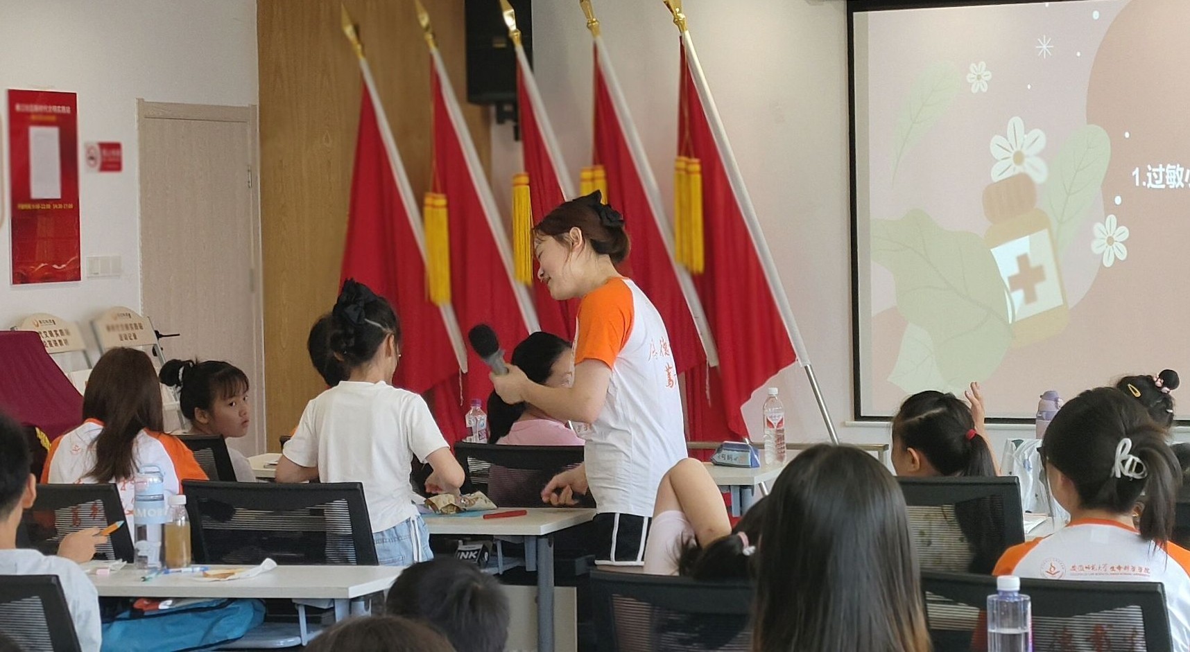 7月2日,實(shí)踐團(tuán)隊(duì)開啟首場(chǎng)主題科普活動(dòng)“探秘健康科學(xué)”。隊(duì)員羅薇以生活場(chǎng)景切入,通過過敏現(xiàn)象解析生命奧秘。“為什么花粉會(huì)讓眼睛發(fā)癢?”孩子們簇?fù)碓谥v臺(tái)前,聆聽過敏反應(yīng)的原理與預(yù)防知識(shí)。當(dāng)講解到“如何識(shí)別過敏原”時(shí),現(xiàn)場(chǎng)氣氛愈加熱烈,孩子們爭(zhēng)相分享親身經(jīng)歷。
