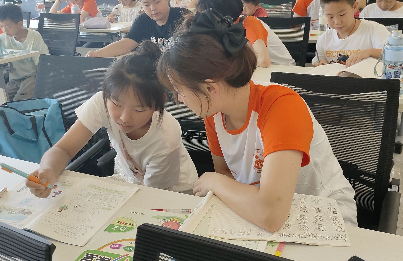 隊(duì)員正在為小朋友輔導(dǎo)作業(yè)。艾力亞斯攝