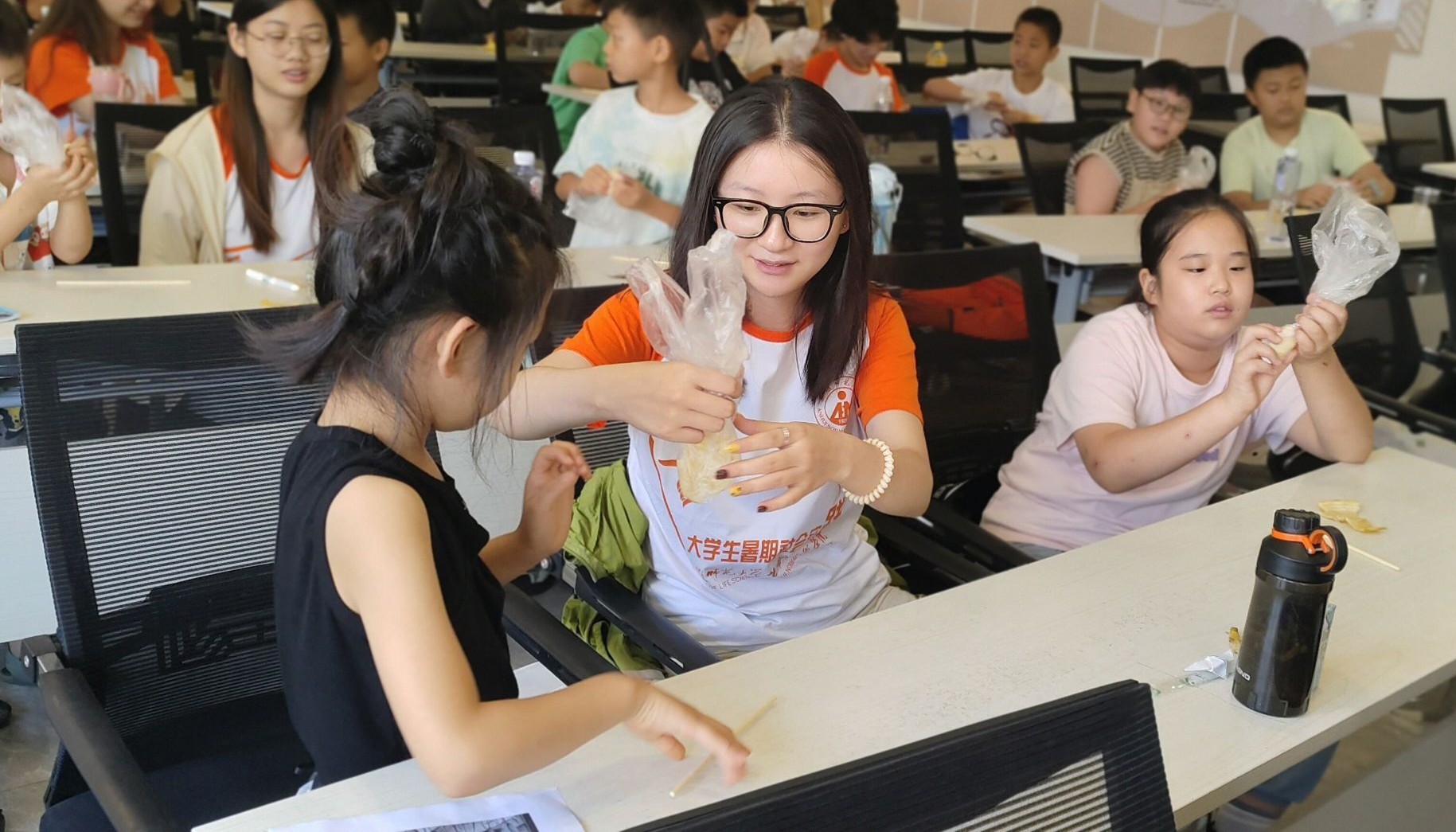 隊(duì)員帶領(lǐng)小朋友提取香蕉DNA艾力亞斯供圖