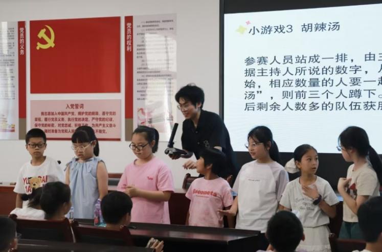 (上圖為“微光致遠(yuǎn)”團(tuán)隊隊員組織小朋友們開展有趣的小游戲。)