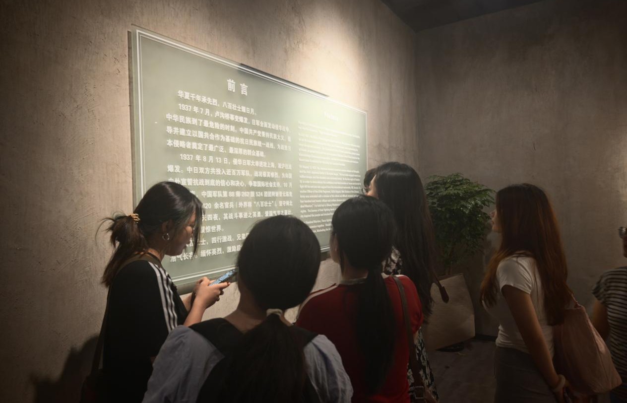 展廳內謝晉元將軍在奔赴淞滬戰場前寫給妻子凌維誠的一封家書直擊心靈;栩栩如生的蠟像群將“八百壯士”在倉庫內死守的經典瞬間凝固。場景布置與光影配合,讓同學們仿佛置身硝煙彌漫的戰場。