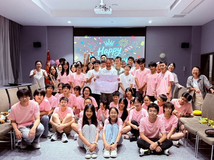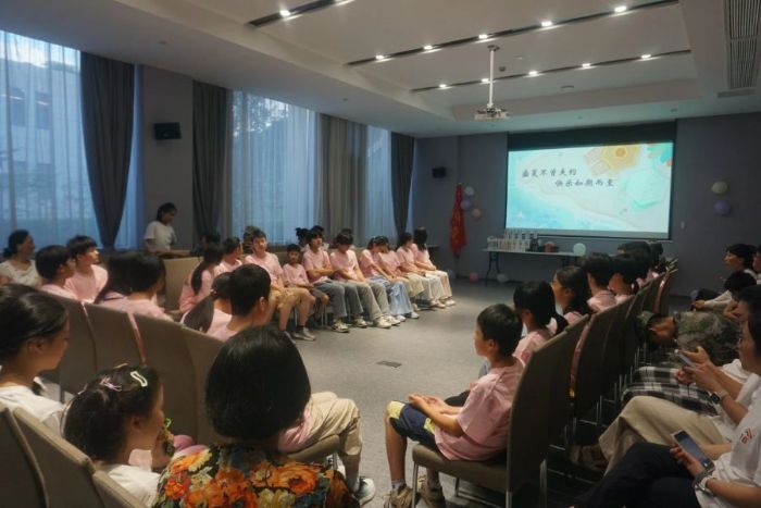 活動室燈光驟熄,生日旋律于黑暗中響起。老師與志愿者推著點燃蠟燭的生日蛋糕緩緩入場,搖曳燭光映出樓爺爺驚喜神情,也照亮孩子們發亮的眼睛。此次,為七月過生日的樓爺爺、小營員及志愿者送上祝福,香甜蛋糕承載著今夏溫暖記憶。