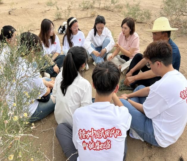 隨后,實踐團深入當地,與群眾在沙丘上進行交流。老一代治沙人現場講述了艱苦治沙的奮斗歷程,使實踐團成員具體了解到民勤荒漠化治理的顯著成效。這正是在黨的領導下,當地人民群眾歷經數代人的持續奮斗,實現生態改善的實踐成果。