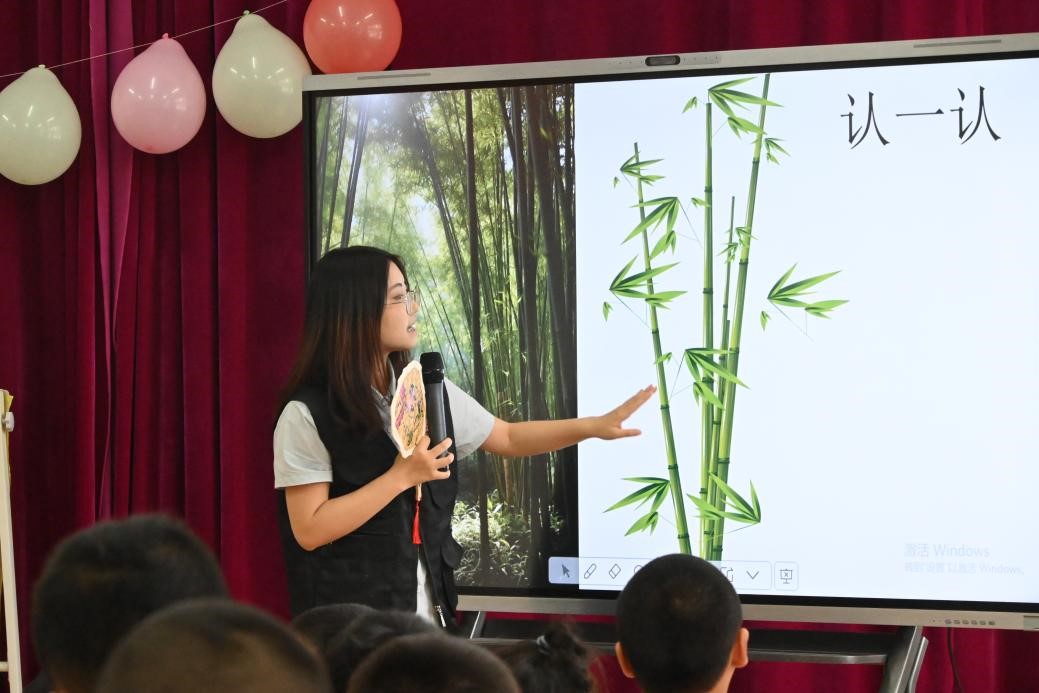 隨著課程漸入佳境,實(shí)踐隊(duì)員們借助精心制作的 PPT,系統(tǒng)講解了竹編文化的起源脈絡(luò)、發(fā)展歷程以及蘊(yùn)含的匠心智慧。在隊(duì)員們循循善誘的啟發(fā)下,同學(xué)們紛紛舉起小手積極回答問題,眼神中閃爍著對新知識的好奇與渴望,在一來一往的互動(dòng)中,大家對非遺竹編的認(rèn)知愈發(fā)深刻,也為后續(xù)的實(shí)踐環(huán)節(jié)埋下了濃厚的興趣伏筆。