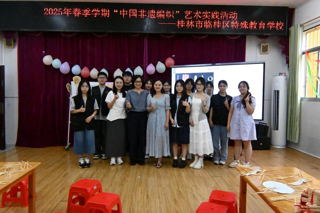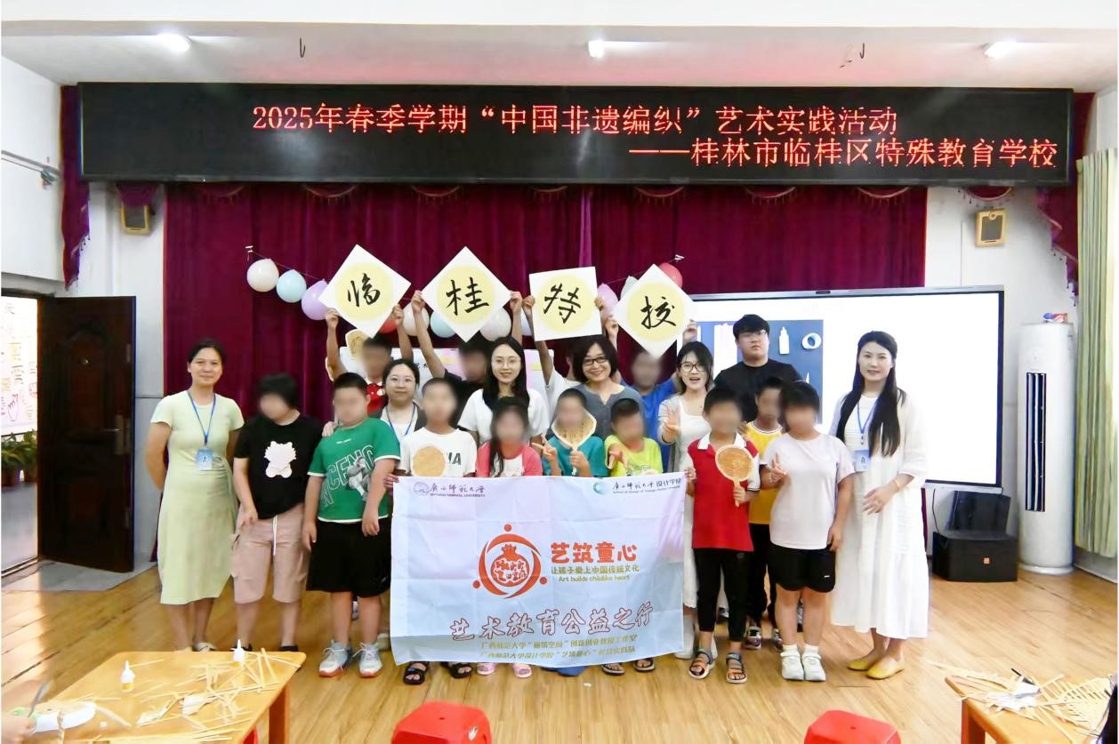 設(shè)計(jì)學(xué)院楊麗文老師帶隊(duì)指導(dǎo)的“藝筑童心”團(tuán)隊(duì)及“麗筑空間”創(chuàng)新創(chuàng)業(yè)教授工作室于2025年暑假奔赴桂林市臨桂區(qū)特殊教育學(xué)校,精心開展了一場以竹編非遺傳承為核心的美育實(shí)踐活動(dòng)。此次活動(dòng)巧妙將非遺技藝與特殊教育領(lǐng)域的美育需求相融合,為特殊兒童悉心搭建起一座通往感知美、創(chuàng)造美的橋梁,讓他們在非遺文化的浸潤中,開啟一段獨(dú)特的美育之旅。