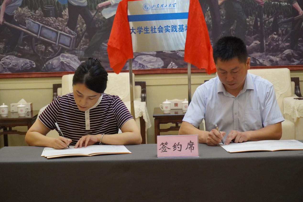 8月9日上午,我院與淄博原山集團有限公司簽訂社會實踐基地共建協議并舉行社會實踐基地共建授牌儀式。原山林場黨委副書記花健,山東理工大學管理學院黨委副書記張佳,管理學院副院長、馬克思主義學院思政課實踐教學指導組教師胡付領,馬克思主義學院思政課實踐教學指導組教師牛鳳燕、于國良,管理學院輔導員馬傳金,“焦桐薪火”實踐團全體成員參與。