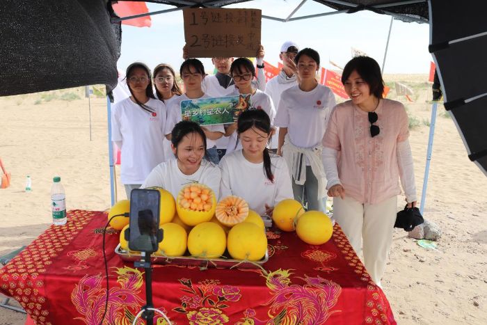 直播間里氣氛熱烈,網友們紛紛在彈幕中點贊、提問互動。同學們不僅詳細解答了關于蜜瓜品質、售后保障的問題,更實時分享各民族群眾協作治沙、共同發展的見聞,讓網友們讀懂:這份甜蜜背后,是黨和國家政策的支持,是各族人民同心同德的合力澆灌。