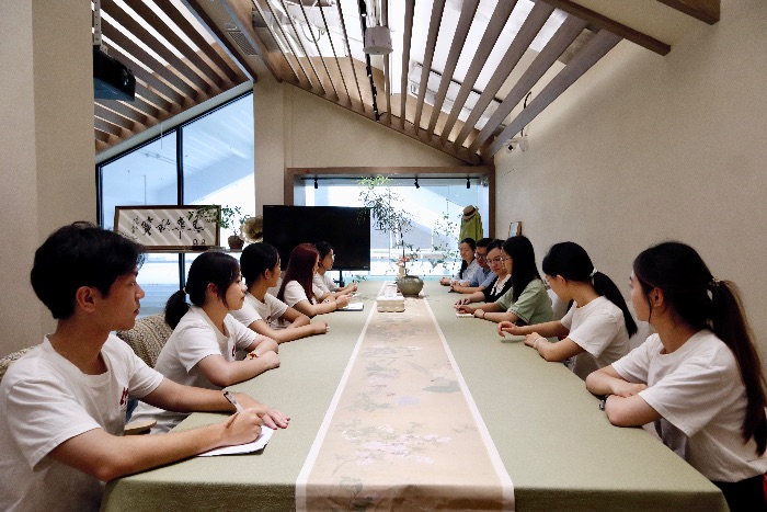 實踐團參訪杭州文旅公司,就杭州段運河沿岸綜合利用保護及建設情況展開實地參訪和專項座談。集團負責人魯琮琦為實踐團成員介紹了杭州運河開發的創新探索,將運河帶來的創新文化融入商業發展,依托運河建設特色街區發展文旅產業,同時將工業文化遺產進行改造保護生態。