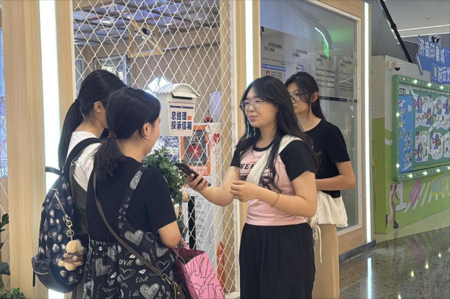 宣講結束后,團隊于當日下午前往聚隆廣場,以印象城為主要調研地點,開啟街頭采訪之旅。8月11日上午,團隊又先后前往濟南恒隆廣場、世貿廣場繼續采訪,下午則奔赴濟南萬象城,繼續圍繞“品牌溢價”主題展開調研。采訪中,團隊圍繞“品牌溢價”這一主題,向過往市民提出了關于購買泡泡瑪特等價格較高商品的問題,包括購買動機、對價格的感受以及對溢價原因的看法等。