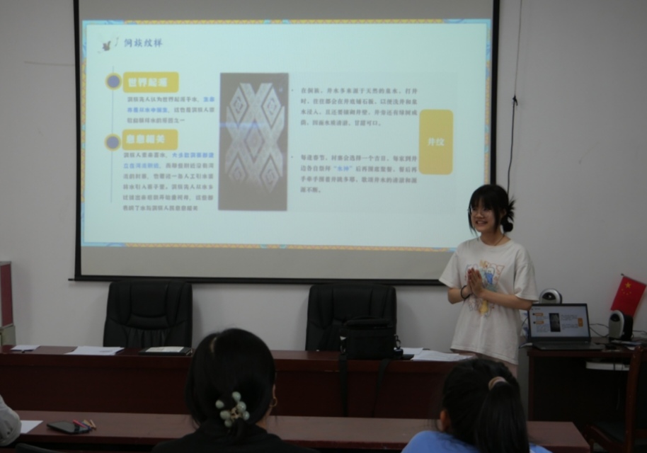 課堂伊始,一段侗族風情紀錄片作為導入內容,片中秀麗的侗寨風光、精美的服飾與建筑瞬間抓住了學生們的目光。“這些花紋有什么特別之處?” 老師的提問引出了本節課的主題,正式開啟了對侗族花紋的探索之旅。