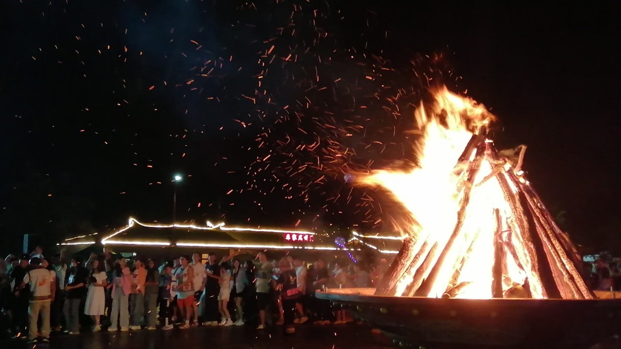 當夜幕像一塊巨大的黑絲絨緩緩覆蓋村莊,火把點燃的剎那,整個世界仿佛都被喚醒了。無數跳躍的火焰,把夜空映得通紅。火光中,一張張臉龐被映照得格外清晰,有老人的皺紋里盛著欣慰,有孩子的眼睛里閃著好奇,有客人的笑容里帶著感動。沒有繁文縟節,沒有刻意安排,村民與客人自然而然地手挽手,圍著篝火跳起了舞。彝族的左腳舞剛勁有力,其他民族的舞步靈動輕快,不同的節奏在火光中交融碰撞,匯成一曲屬于團結的交響樂。