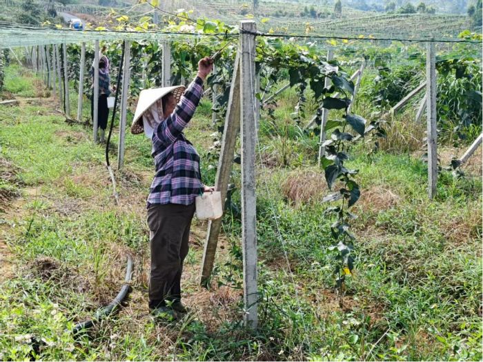 團(tuán)隊(duì)成員到達(dá)永?h后前往永?h羅漢果科技示范園參觀羅漢果種植基地的羅漢果種植,為深入了解羅漢果種植情況團(tuán)隊(duì)成員在實(shí)地采訪了示范園內(nèi)的種植戶了解當(dāng)下永福縣羅漢果在種植方面主要運(yùn)用的手段。