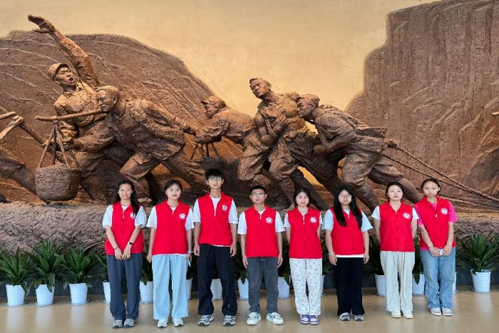 實踐團來到延安革命紀(jì)念館廣場,高大雄偉的毛主席塑像引人注目,成員們在此瞻仰、合影留念。