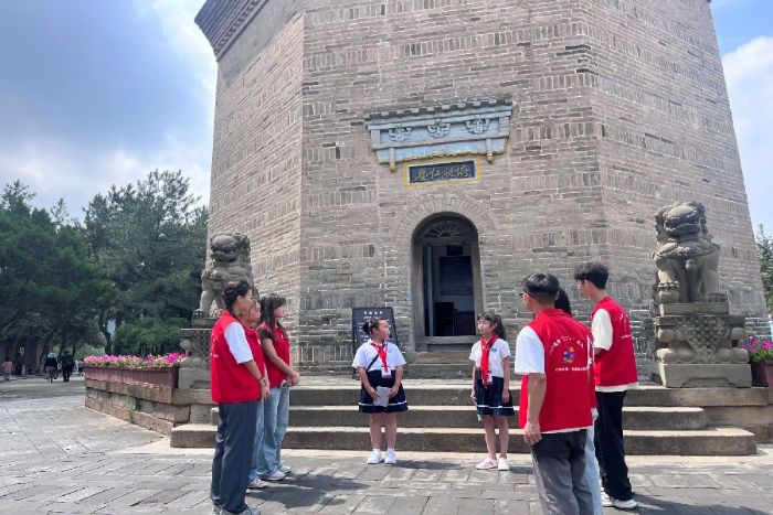 實踐團首站抵達寶塔山,團隊成員懷崇敬之心,于松柏間拾級而上,赴一場與歷史的對話。而這場對話的“引路人”,是兩位來自延安職業(yè)技術(shù)學(xué)院附屬小學(xué)的“小小講解員”——他們用清脆的童聲,為我們打開了一扇通往崢嶸歲月的窗。兩位戴著紅領(lǐng)巾的“小小講解員”,他們熱情講解寶塔山的歷史,主動交流互動,獲得成員一致肯定,他們猶如一張思想政治教育傳播的“新名片”,恰是值得學(xué)習(xí)的榜樣。