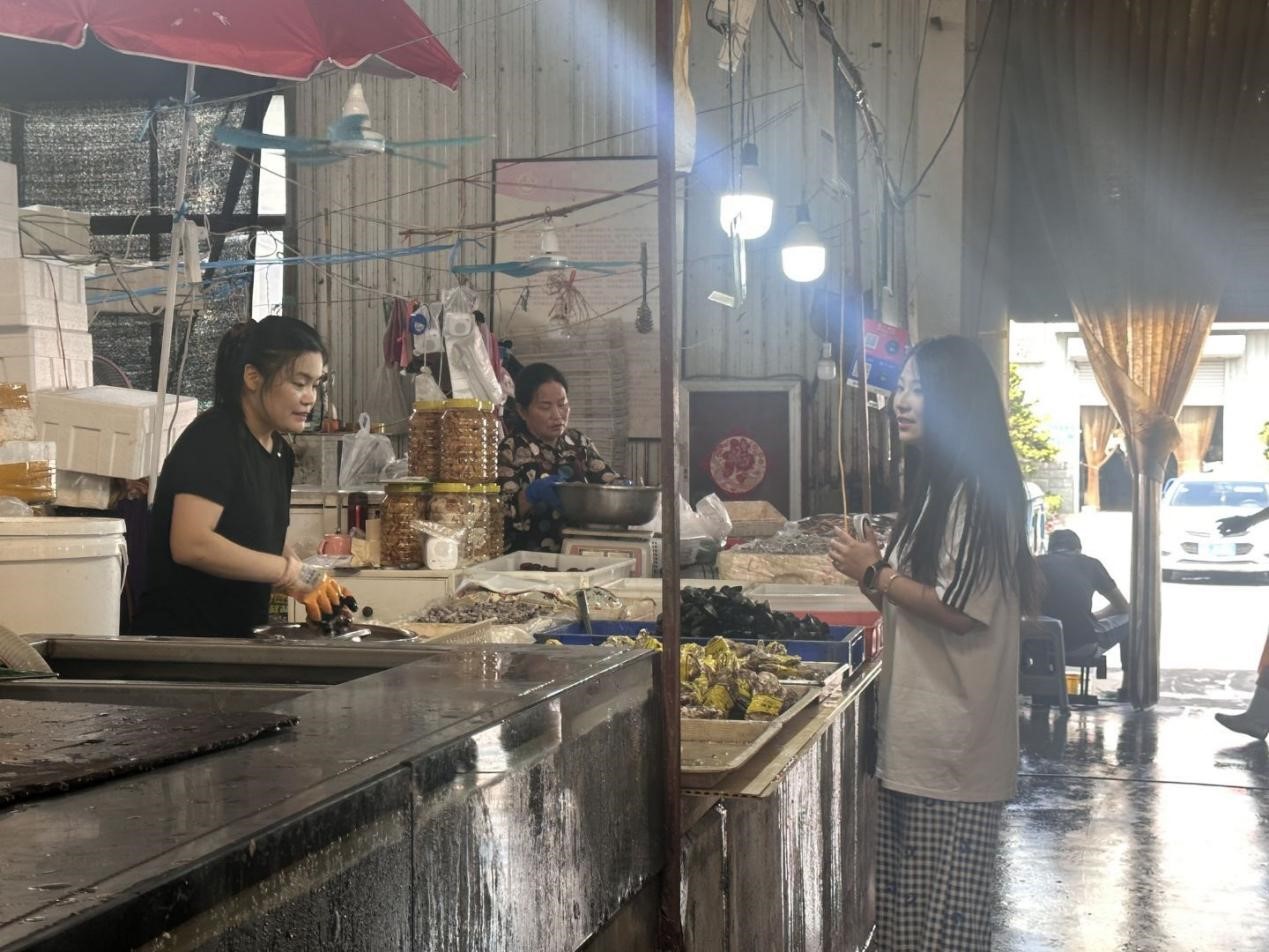 市井探海味,攤位話生鮮離開立健藥店,實踐隊隊員們又來到了石島農貿市場。這里是威海市重要的海鮮交易市場,各種海鮮琳瑯滿目,熱鬧非凡。隊員們穿梭在市場中,對各類海鮮的種類、價格、產地、銷售情況進行了詳細調查。