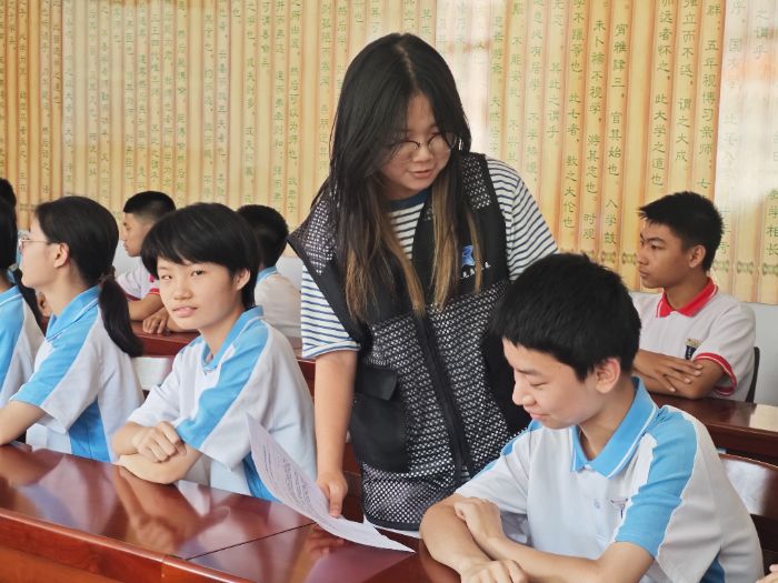 隨后,實踐進入互動環節。團隊成員分組與學生們交流,引導他們就“智能工具如何幫助解決學習或生活中的問題”進行提問。負責人郭政辰及隊員結合實例進行解答,將抽象的技術原理轉化為學生可理解的具體場景。