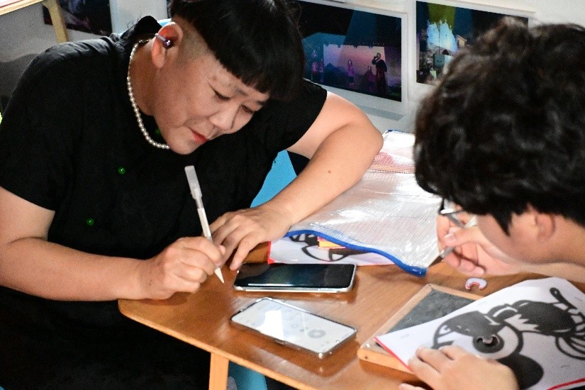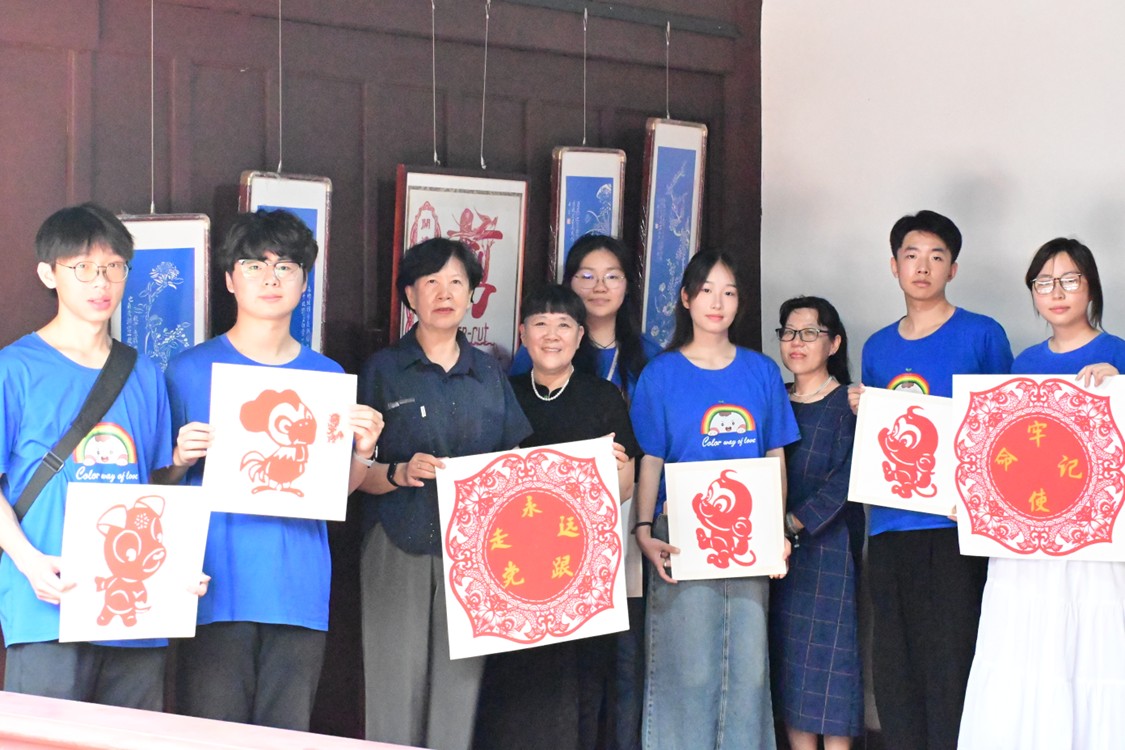 董老師為實(shí)踐團(tuán)成員講解剪紙方法