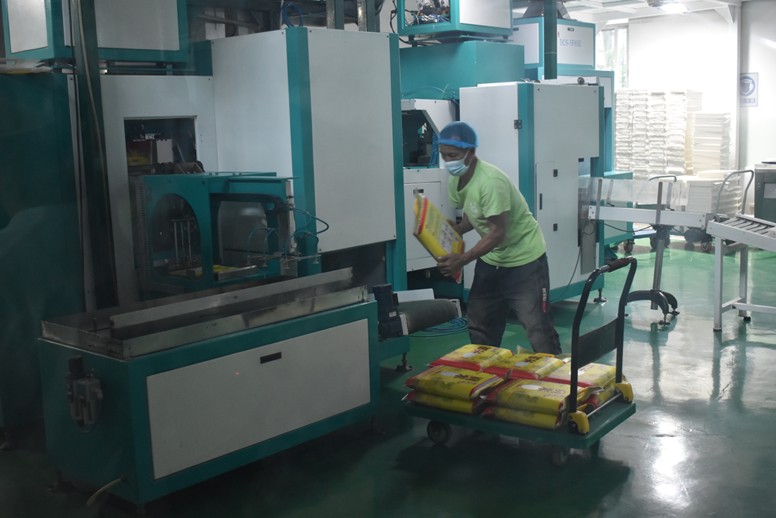 穿過綠意盎然的園區,生產車間的機械聲漸次清晰。高大的設備有序運轉,谷粒在傳送帶上跳躍,經過脫殼、篩選、拋光,褪去粗糲的外殼,露出瑩白的內里。空氣里浮動著新米特有的清甜。
