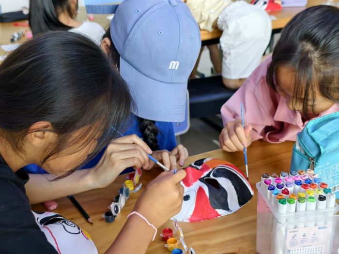 接下來的臉譜繪制互動環(huán)節(jié)將氣氛推向高潮。小朋友們興奮拿起畫筆,在空白臉譜上發(fā)揮創(chuàng)意,把對傳統(tǒng)文化的熱愛融入色彩。現(xiàn)場滿是童真活力與歡聲笑語。