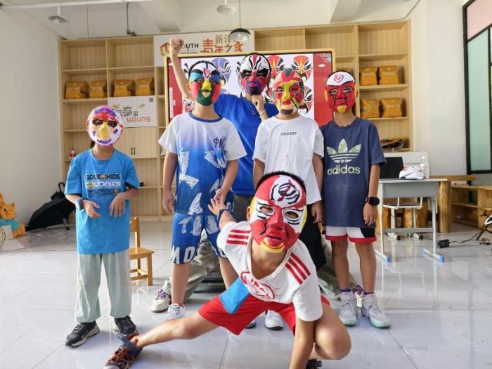 最后,團隊和小朋友們擠在一起合影,臉上的笑容和手里的臉譜一樣亮眼。快門聲一響,把這份快樂悄悄收進了時光里。