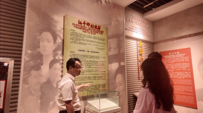圖為雷松林為實踐隊員講解沈浩同志先進事跡。萬梓辰供圖
