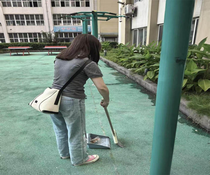 實踐中,隊員們分工協作:手持掃帚、撮箕清掃路面雜物,彎腰撿拾綠化垃圾,讓社區角落“凈”起來;同時化身“宣講員”,向居民發放環保手冊、解垃圾分類知識,結合案例普及文明公約,讓綠色理念、文明意識融入日常。