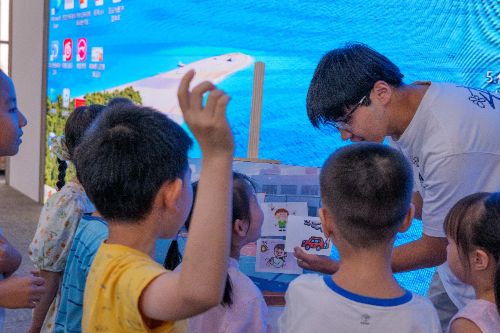 漆扇密碼:呼吸自由的跨媒介敘事 非遺漆扇工作臺前,醫學與藝術展開對話。"醫生說我肺里的小喇叭愛發脾氣,"一名十歲患兒邊用蚌殼刮涂藍色大漆邊解釋,"但游泳能讓它唱平穩的歌。"她在扇面勾勒波浪紋泳道,實踐團隊志愿者在旁協助調色。這種健康敘事創作源于團隊的設計理念:將奧運冠軍阿德里安戰勝哮喘的案例轉化為視覺符號。當小朋友在扇柄系上寫有"每日吸藥"的藍絲帶時,其父在承諾樹便簽寫下:"暑假嘗試為孩子報名游泳課"。漆扇不僅是工藝品,更是將醫療行為轉化為兒童可理解的情感符號。