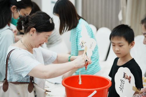。▓D為家長和小朋友一起制作漆扇。張婧菡攝)