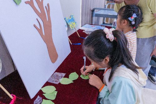 最動人的是角落里的場景:七歲男孩攥著彩筆,父親半蹲著輕握他的手:"想想今天學到的防護妙招?"孩子思索片刻,在樹葉便簽畫上兩個相連的愛心:"爸爸戒煙,我記吸藥,一起保護小喇叭(肺)!"母親拍下這溫馨時刻。實踐團隊志愿者觀察到,超過60%的家庭以協作方式完成承諾書,父母引導孩子將醫學知識轉化為個性化行動指南。
