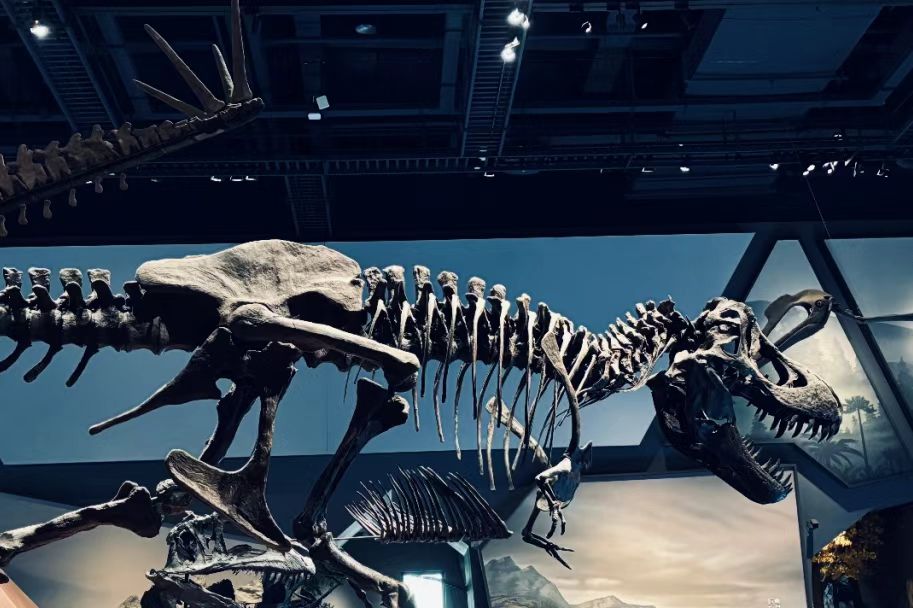 恐龍館內龐然大物的骨架訴說著中生代的輝煌與寂滅,引發了隊員們關于物種興衰的深思。