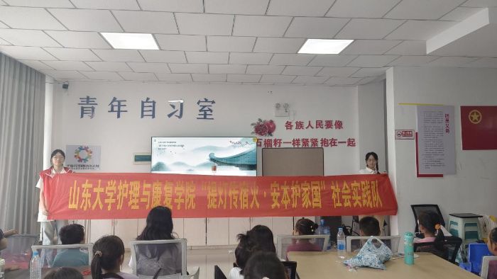 山東大學(xué)護(hù)理與康復(fù)學(xué)院“提燈傳宿火·安本護(hù)家國”社會實踐隊的戴悅?cè)缓屯跣姥荆砸粓鰟e開生面的