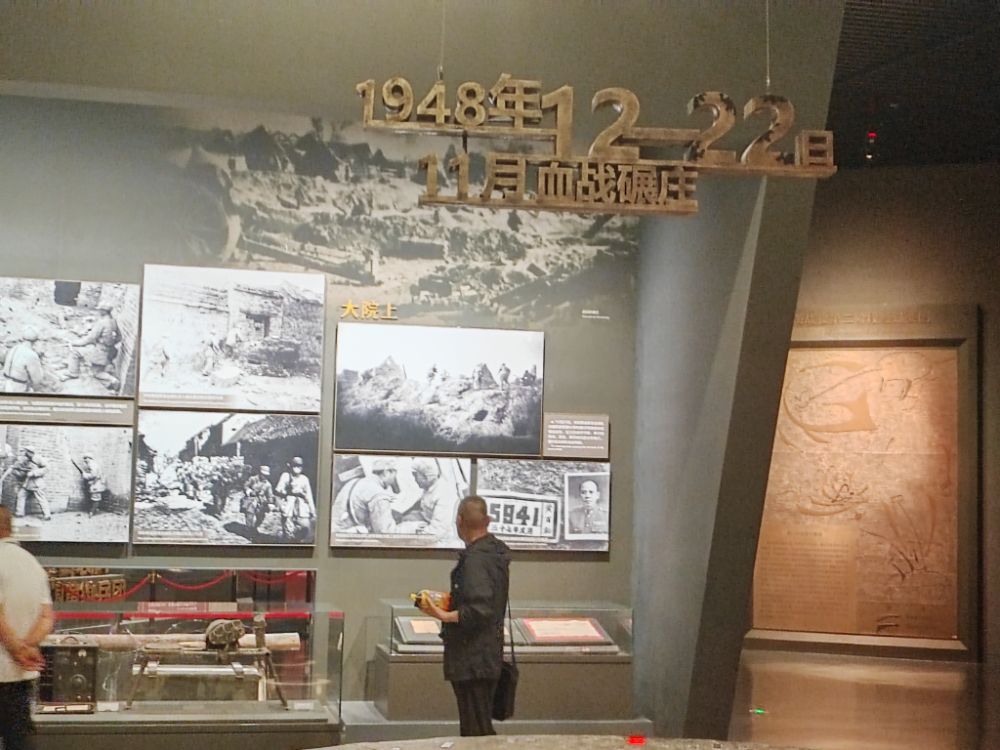 在紀(jì)念館內(nèi),實(shí)踐團(tuán)循著歷史脈絡(luò)依次參觀四大展區(qū)。第一展區(qū)“兩種前途,命運(yùn)決戰(zhàn)”清晰呈現(xiàn)了抗戰(zhàn)勝利后國(guó)共兩黨的道路分歧。第二展區(qū)“逐鹿淮海,決戰(zhàn)決勝”詳細(xì)展示了戰(zhàn)役三階段進(jìn)程。第三展區(qū)“人民戰(zhàn)爭(zhēng),深厚偉力”緊扣“人民的勝利”主題。第四展區(qū)“革命英烈,永垂不朽”緬懷了3萬余名犧牲的解放軍將士、支前民兵和隱蔽戰(zhàn)線戰(zhàn)士。他們以無畏勇氣打贏硬仗惡仗,英雄氣概永垂不朽。泛黃的照片與斑駁的文物,生動(dòng)再現(xiàn)戰(zhàn)役的艱辛與輝煌,深刻印證“人民群眾是真正的英雄”這一真理。