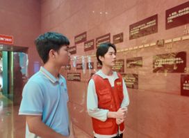 下一站,實踐團部分成員奔赴江蘇省連云港市。上午,在安峰山烈士陵園,隊員們列隊肅立,向革命先烈默哀、敬獻鮮花,致以最深切的緬懷。下午,在連云港市革命紀念館,隊員們系統研習了從五四運動到連云港解放的地方革命斗爭史,在一件件實物史料中感受先輩們的艱辛與不屈,并于館內莊嚴重溫入黨誓詞,錚錚誓言回蕩于心。實踐團成員李果表示:場館里,一件件斑駁的軍裝、一份份泛黃的戰地文件、一幕幕艱苦卓絕的斗爭場景,都無聲卻震撼地還原了崢嶸歲月。這次宣講實踐不僅是向外界宣傳紅色精神,更是對自身靈魂的叩問與初心的重溫。
