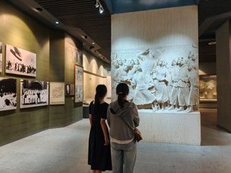 實踐次日,團隊轉赴江蘇省徐州市,角色從參觀者轉變為主動的“宣講者”。在巍峨的淮海戰役烈士紀念塔前,面對鐫刻著543位烈士姓名的碑壁,成員們深感宣講責任之重大。在淮海戰役紀念館,每一件展品都在訴說著軍民同心、人民偉力的故事。下午,團隊探訪渡江戰役總前委舊址,站在那盞舊煤油燈和老式電話機旁,向聽眾生動描繪革命家們在此運籌帷幄、決勝千里的歷史瞬間。為了完成從“看”到“講”的轉變,成員們深入查證資料、提煉故事,將靜態的歷史轉化為動態的敘述,向游客宣講生動的往事與紅色精神,同時,團隊成員自身也對“信仰”與“忠誠”有了更深層的體悟。