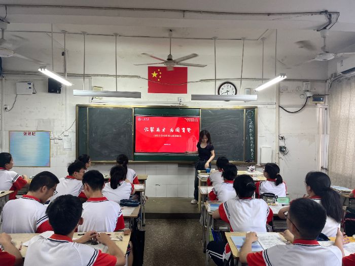 7月12日,李澤周走進河北省衡水順平中學。為讓宣講更貼合母校學情,他提前通過視頻會議與校方深入溝通,針對學校特色教育調整了專業介紹側重點,反復打磨PPT內容,將自己在山大的學習生活點滴融入其中。宣講中,他以親切的開場白拉近與同學們的距離,從山東大學的百年校史講起,細數學校在不同歷史階段的發展變革,展現深厚底蘊;隨后詳解學校雄厚的師資力量、豐富的學科資源及前沿科研成果,讓同學們直觀感受山大的學術實力。他還生動分享了山大豐富多彩的社團活動、舒適的宿舍環境和特色校園美食,讓同學們對大學生活充滿向往。