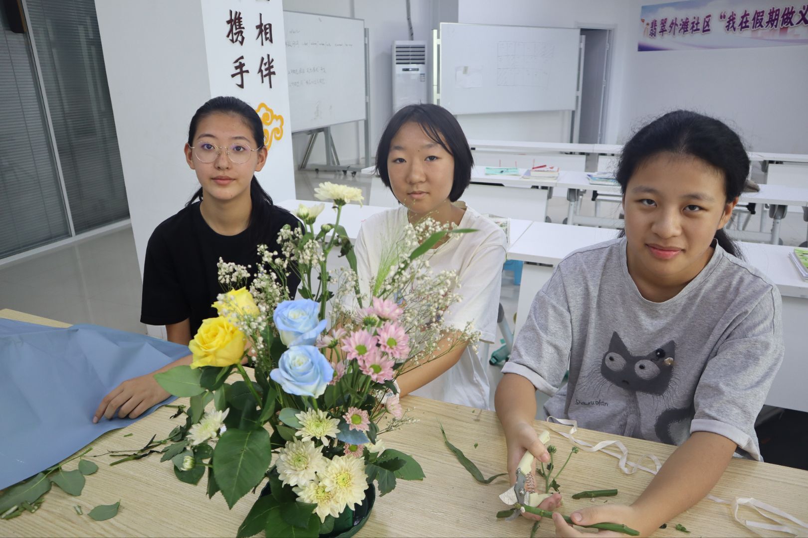 插花不僅僅是一門課程,更是青少年美育的有益補(bǔ)充。通過觀察花草的形態(tài)、色彩,動手進(jìn)行插作,同學(xué)們會重新審視大自然和自己周圍的世界,內(nèi)心也會更加充滿愛,變得更加耐心和專注。同時(shí),在插花過程中的色彩搭配和簡單的空間造型,也在潛移默化中培養(yǎng)著孩子們的審美感知能力。