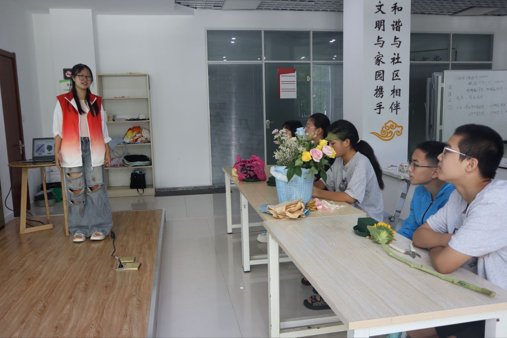 2025 年 8 月 21 日,山東大學(xué)護(hù)理與康復(fù)學(xué)院南丁格爾志愿服務(wù)隊(duì)為社區(qū)同學(xué)們帶來了一節(jié)溫馨而富有創(chuàng)意的花藝沙龍課程。此次課程旨在緩解青少年的學(xué)業(yè)壓力,通過美育鍛煉他們的創(chuàng)造性思維、提升專注力,讓孩子們在與花草的互動中感受生活之美。