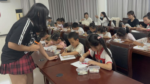 彭佳玉同學負責后續與小朋友們的互動交流,通過填色與石膏娃娃繪制等互動,以專業且富有溫度的引導,讓紅色種子在孩子們心中進一步扎根,為紅色教育的創新實踐提供了生動范本。