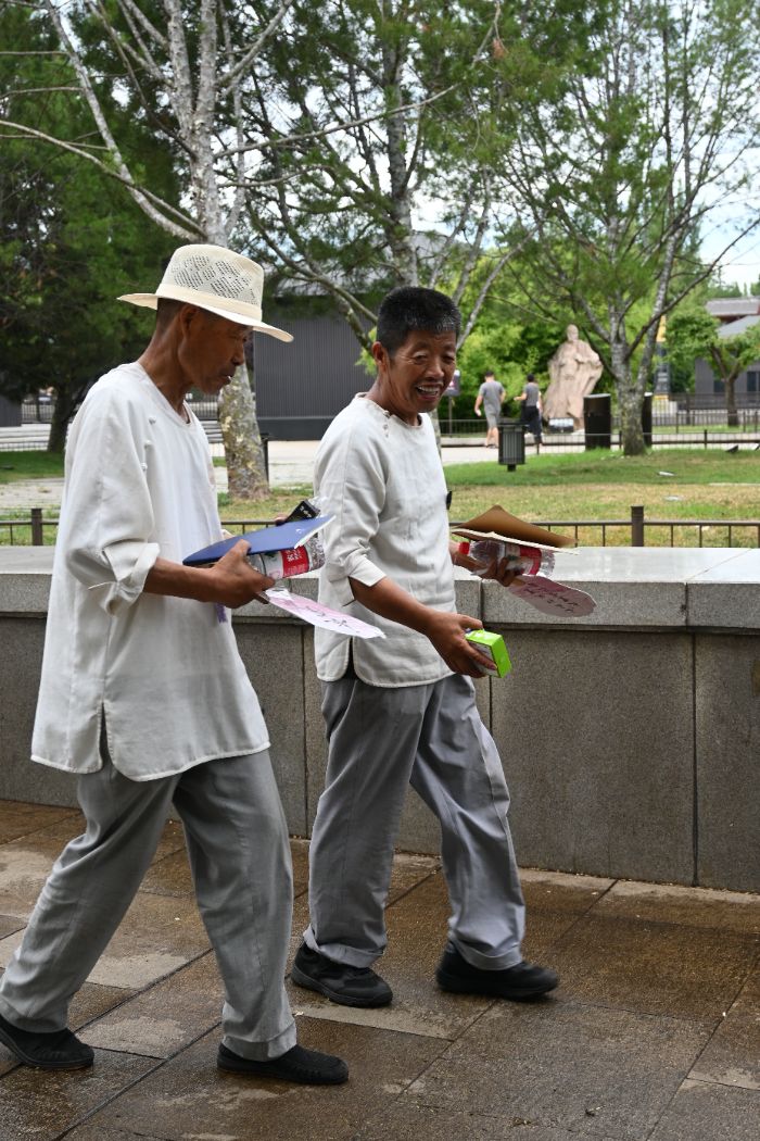 每天清晨,當第一縷陽光照在大雁塔尖,維護人員早已開始了一天的工作。他們手持掃帚、撿拾器,穿梭在廣場、步道、綠化帶之間,不放過任何一個角落。高溫酷暑中,他們的汗水浸透了工裝,卻始終面帶微笑,動作利落。一位有著二十年工齡的保潔阿姨告訴隊員:“大雁塔就像我們的家,干干凈凈,游客才能舒心,文化才有尊嚴。”